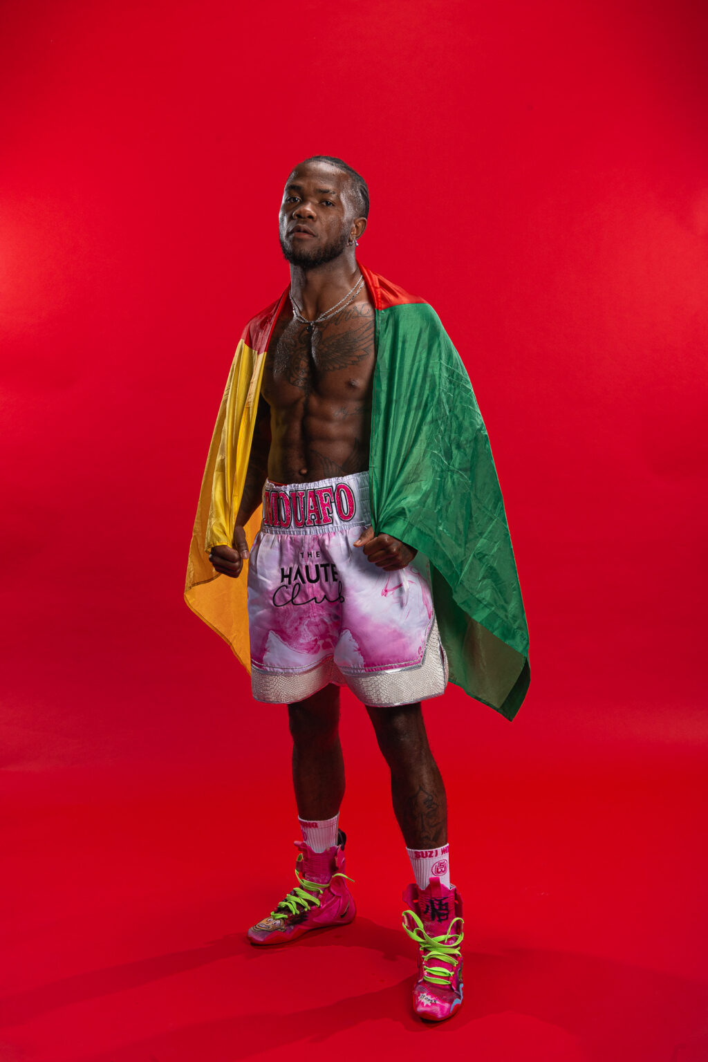 Mouafo fonctionne différemment. Il n’est pas du genre à plaire à tout le monde. Son style est marquant : tatouages, cornrows, vêtements larges et lunettes de soleil. Dans la vie quotidienne, il est cool et détendu, mais sur le ring, il devient « The Ruthless », l’Implacable. Lorsqu’il monte sur le ring, accompagné de rap live, torse musclé et regard concentré, seul le knock-out compte. Alors, la machine prend le contrôle.